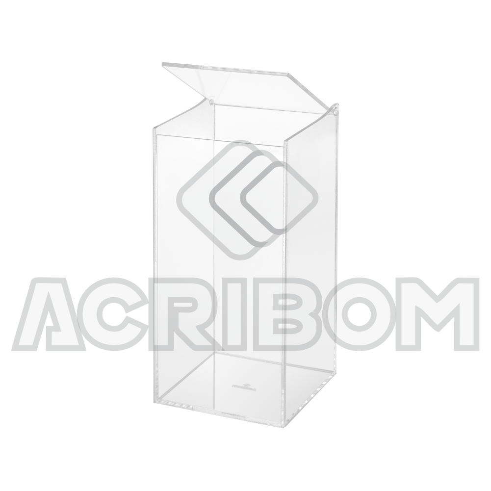 Caixa em acrílico cristal para uso geral com formato retangular e tampa articulada 50x25x25cm