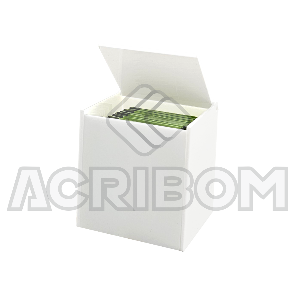 Caixa Pequena Porta Chá Para Sachês. Produzida em acrílico Branco com tampa articulada. Com 01 compartimento para sachês de chá.
