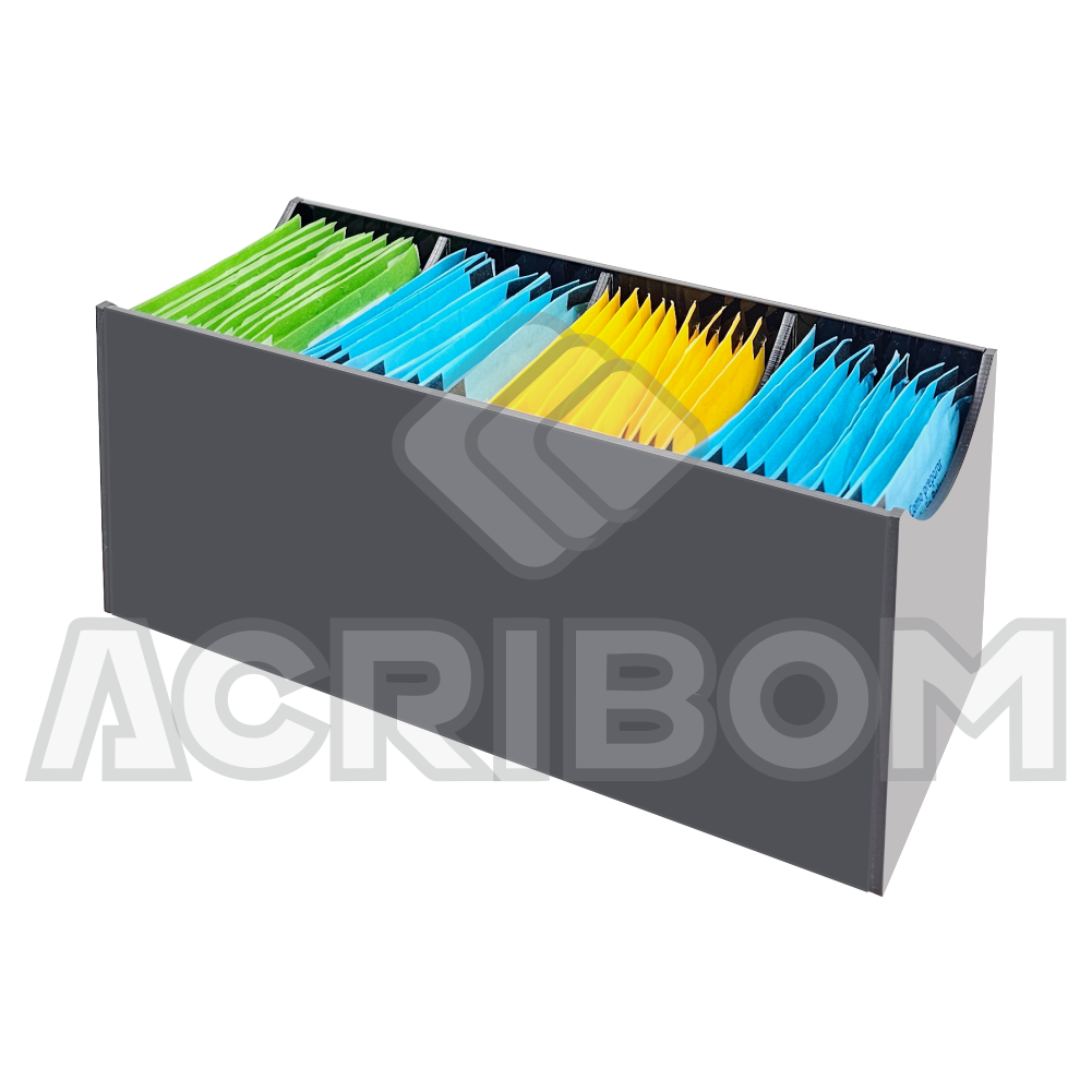 Caixa Porta Chá Para Sachês. Produzida em acrílico Preto SEM tampa. Com 04 compartimentos para melhor acomodação dos sachês de chá.